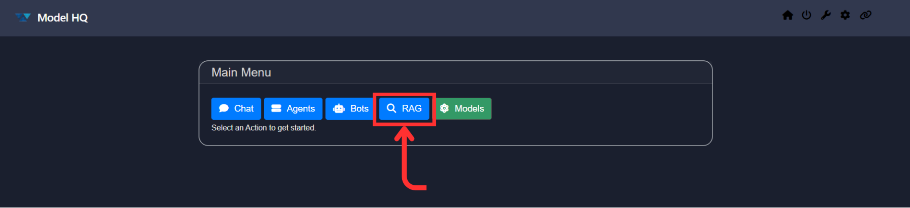 Click on the RAG button from the main menu to get started.