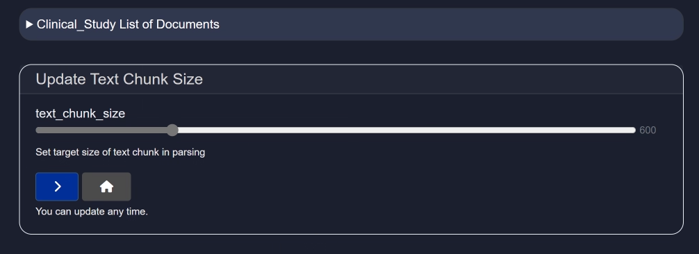 - Configure (⚙️) – Configure parsing settings such as text chunk size.