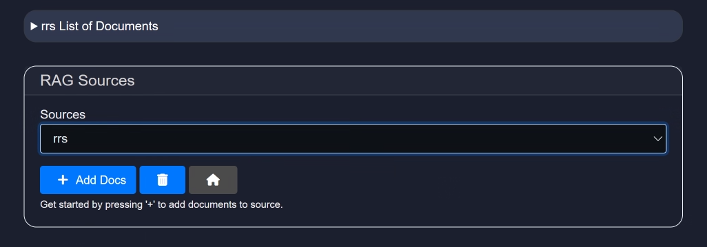 - Dropdown: Displays the list of existing RAG sources.