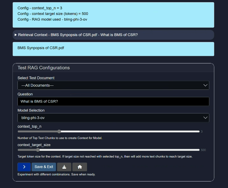 Either choose all the documents or select any one you have uploaded (via "add-docs" button) for testing purpose. - Question: