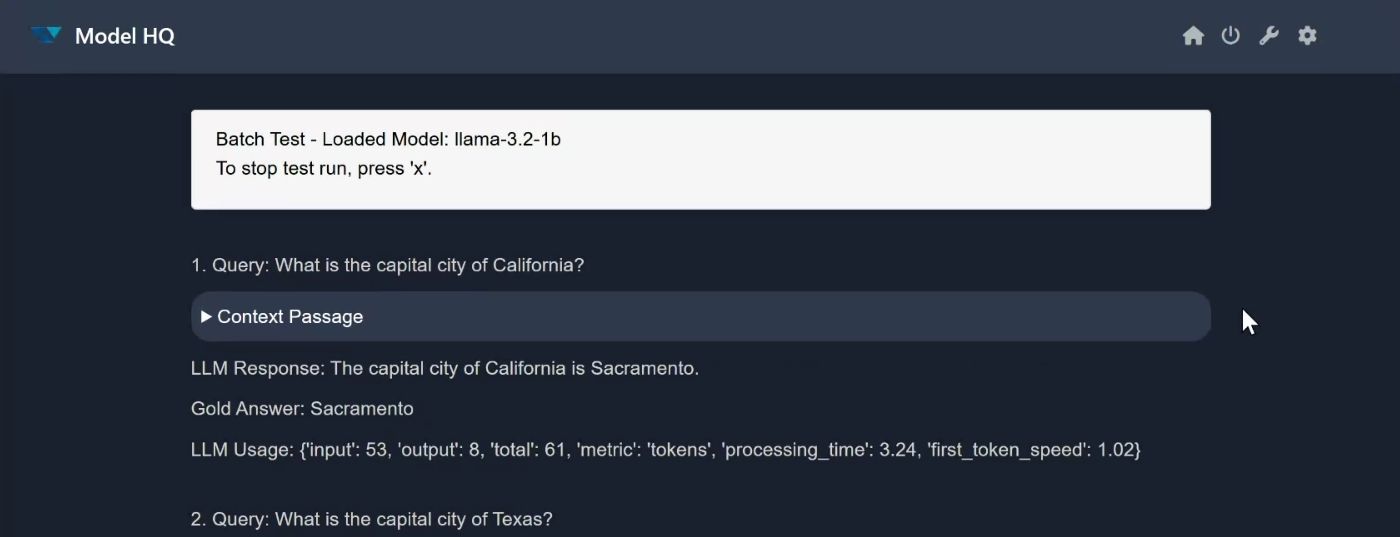 - If the model is not yet downloaded, it will be fetched from the Model HQ Model Catalog (requires internet).