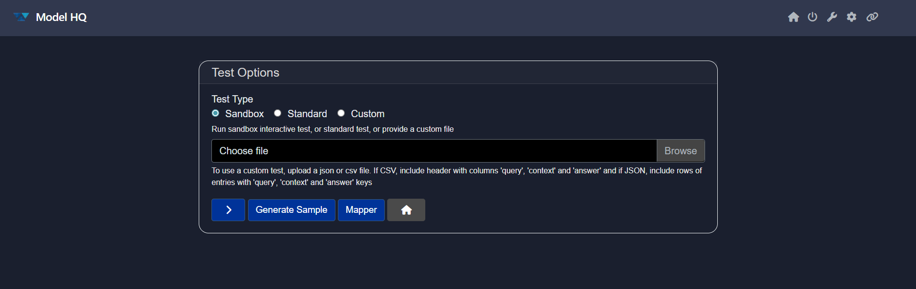 If you are using a custom dataset, click Mapper to align your schema to Model HQ's required format.