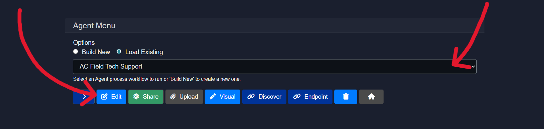 There are two ways to edit an agent: