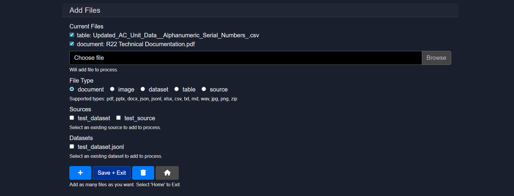 - User-Table Accepts CSV or JSON files. Tables must first be processed with the