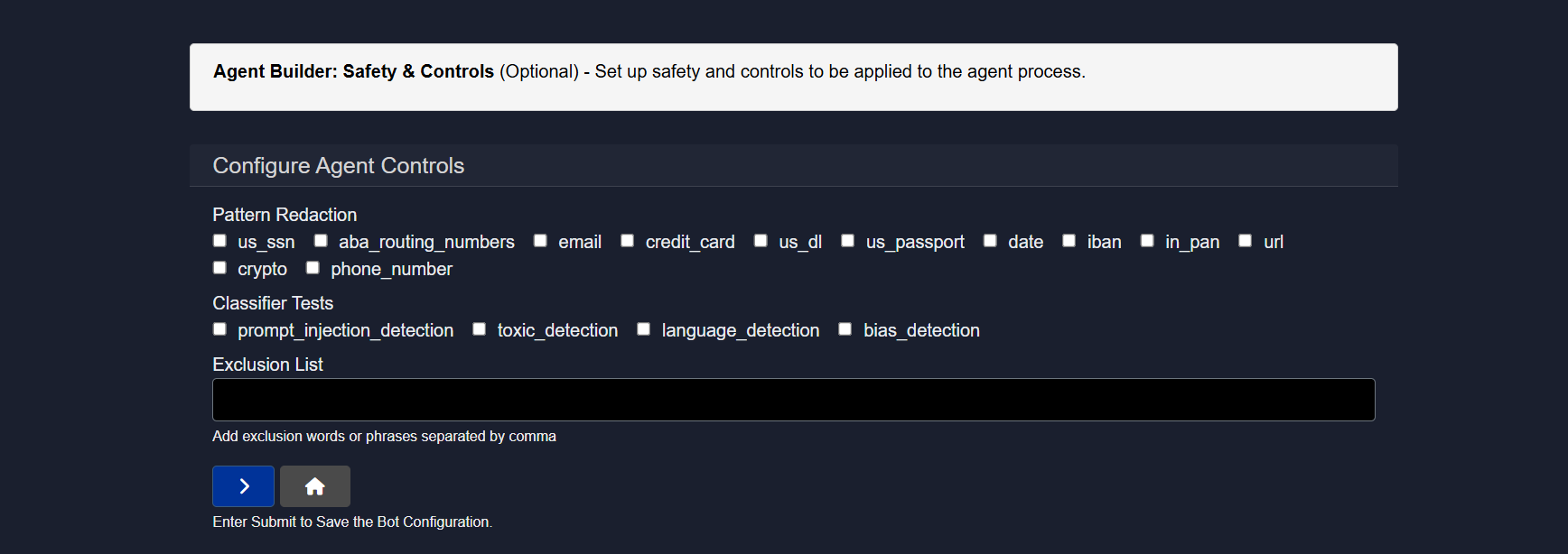 - Run Executes the agent with the current configuration.
