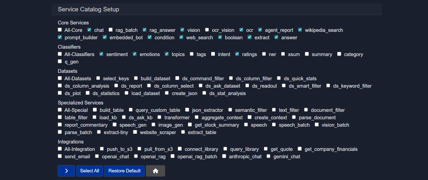 - Services and inputs can be configured